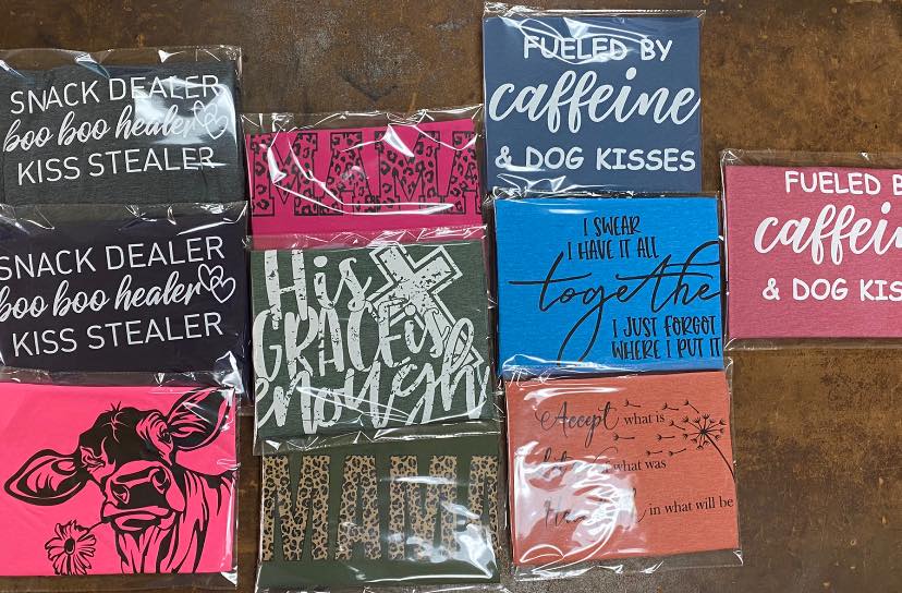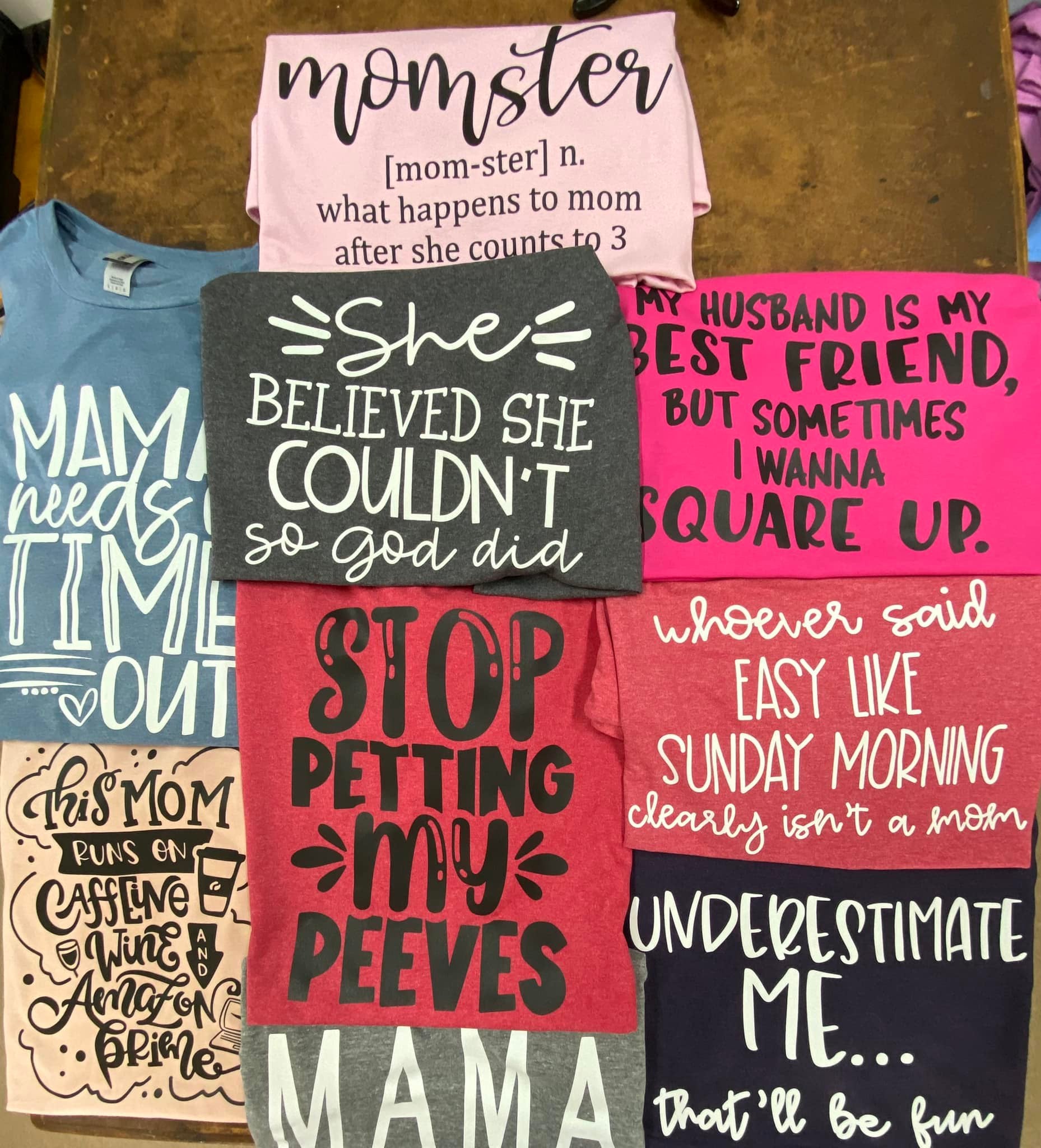 Here are a handful of the many, many Mom tees I have created over the years. This picture if from one of my mystery tee sales!