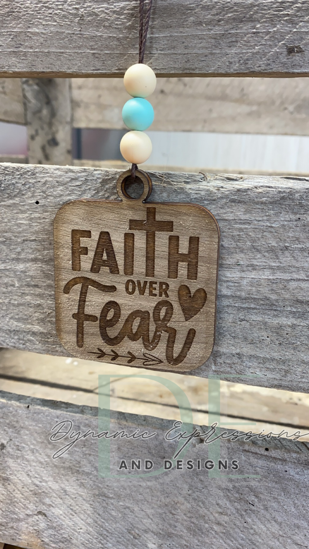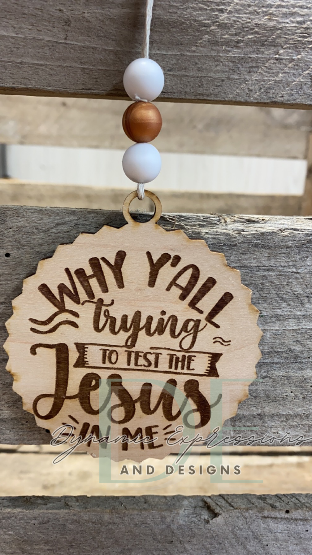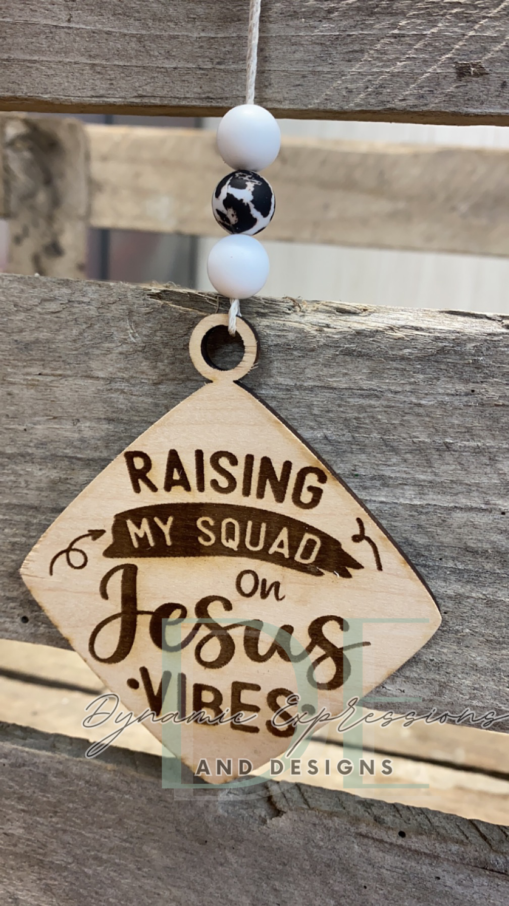 These are 3.5" wooden car charms that hang on rearview mirrors.