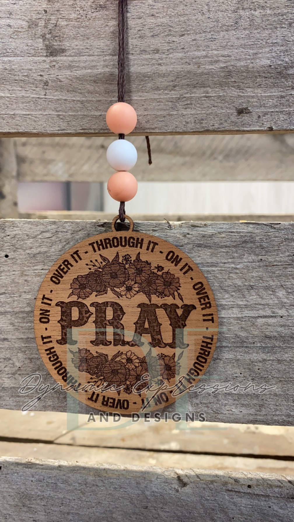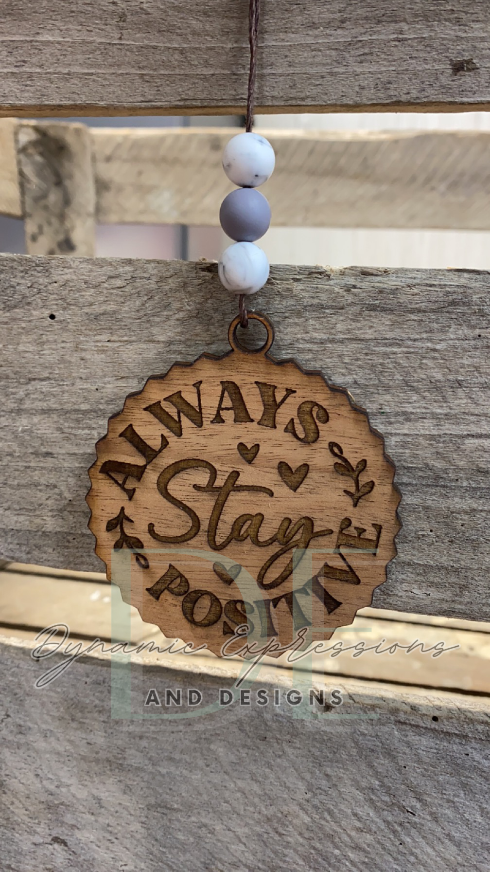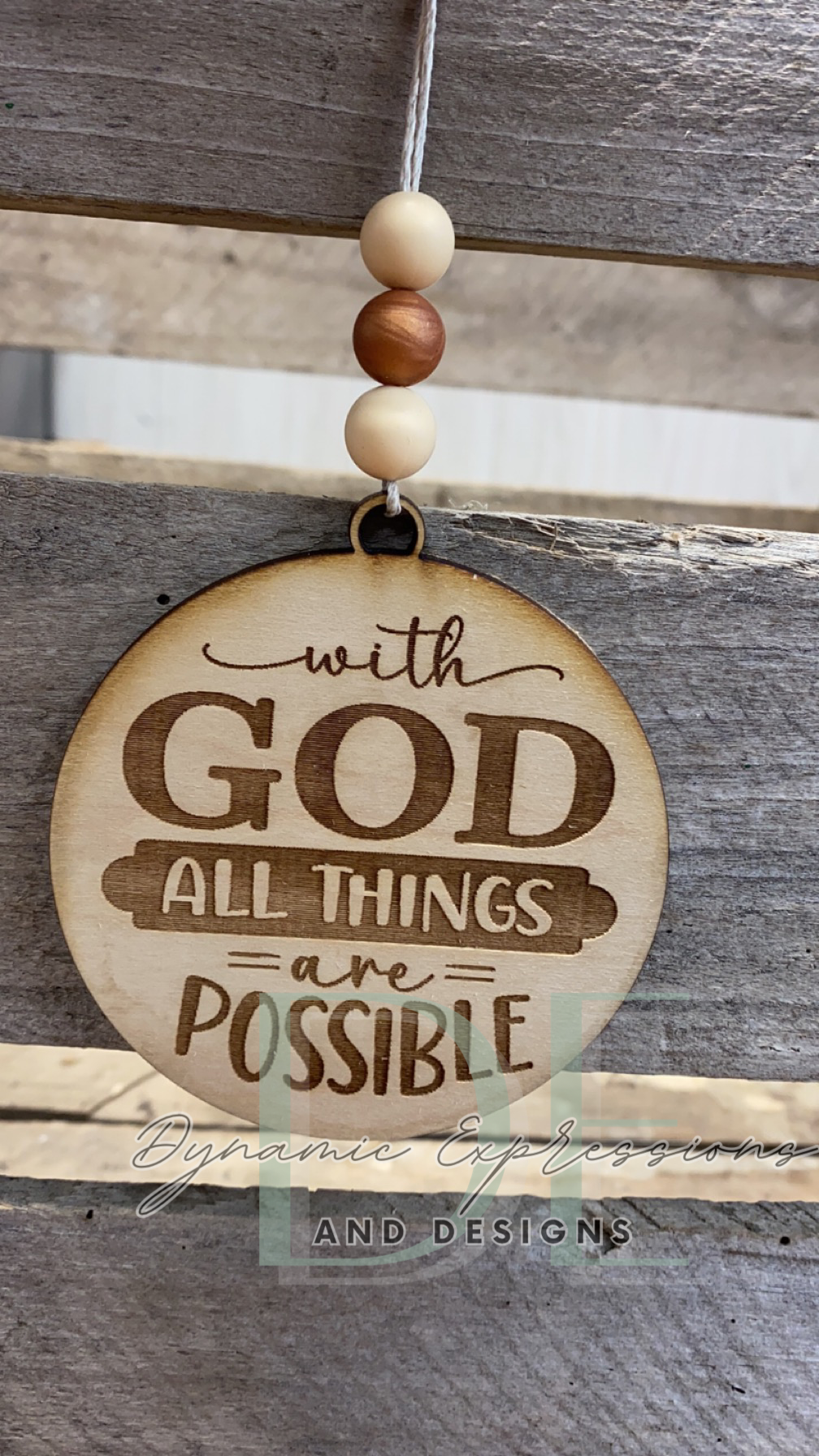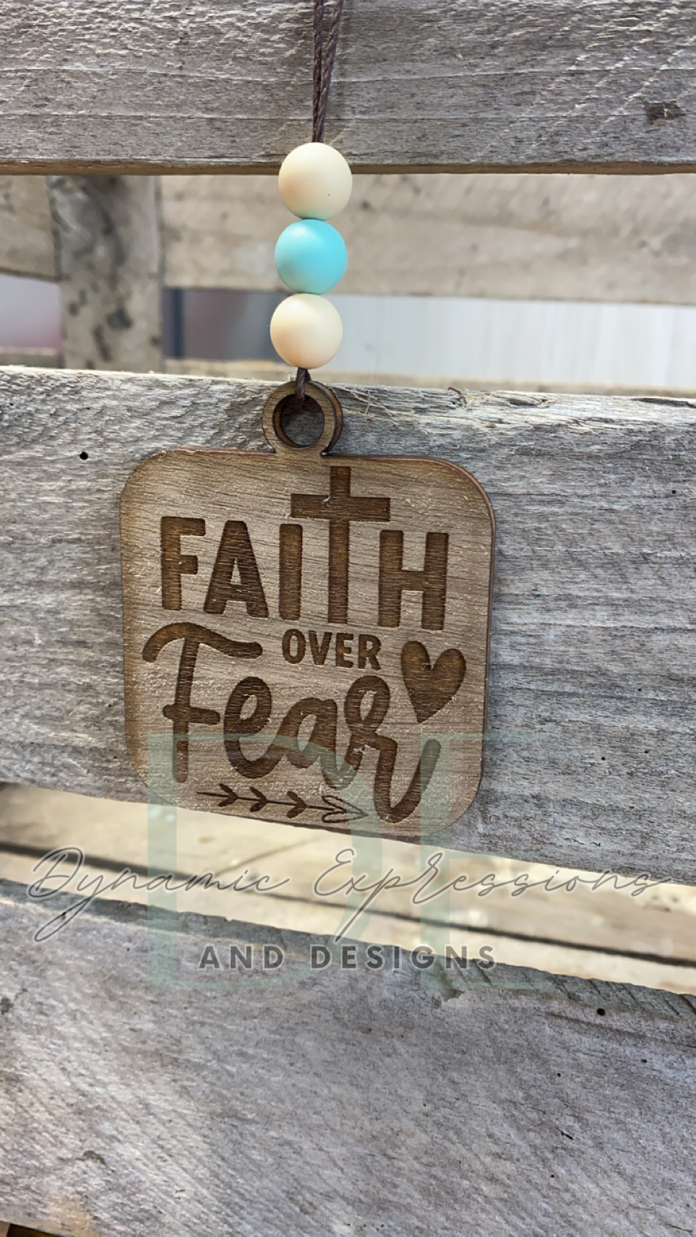 These are 3.5" wooden car charms that hang on rearview mirrors.