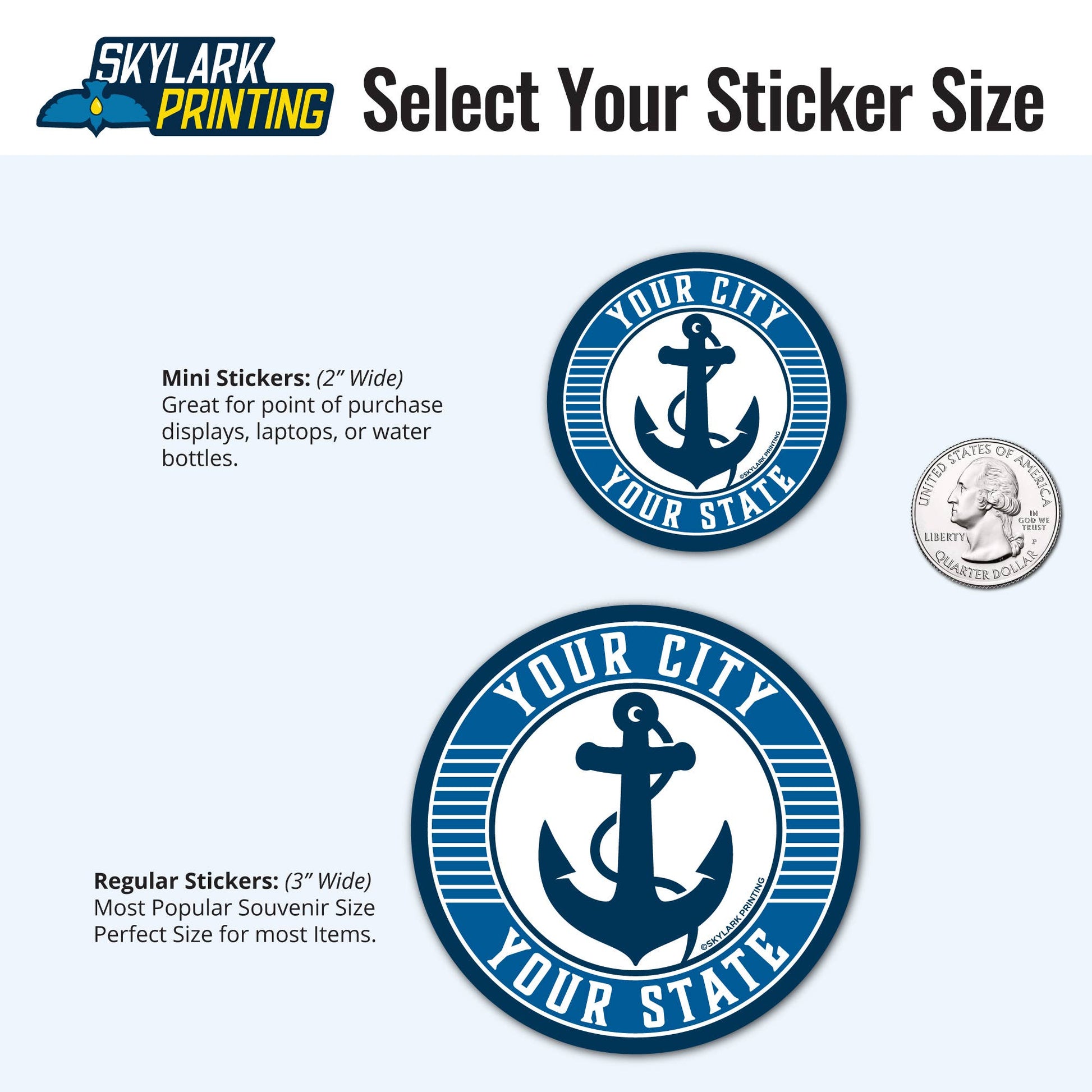 Sea Captain Custom Souvenir Sticker with Your City, State: Gloss / Regular Size (Popular Souvenir Size)